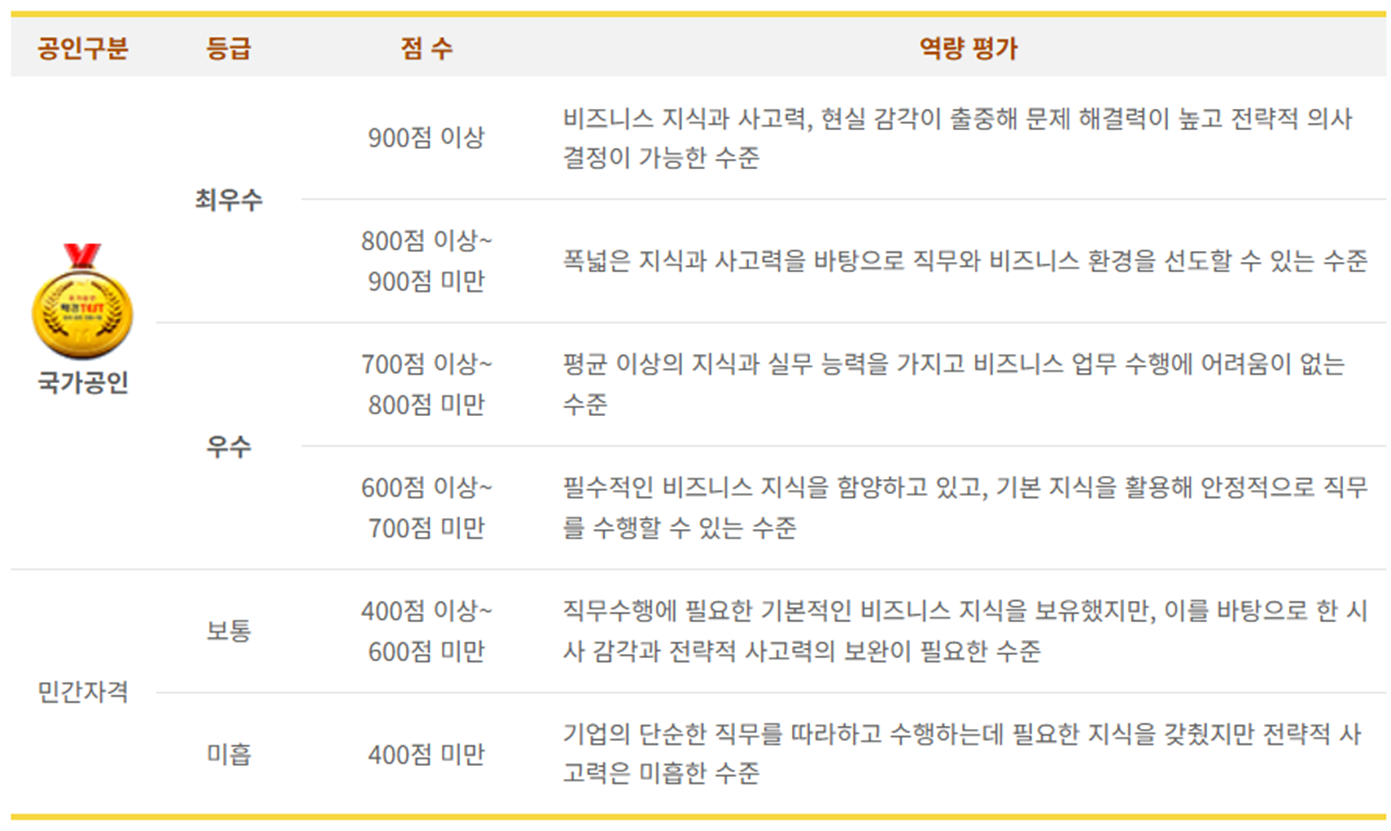 ✔️ 600점 이상: 우수 / 800점 이상 : 최우수