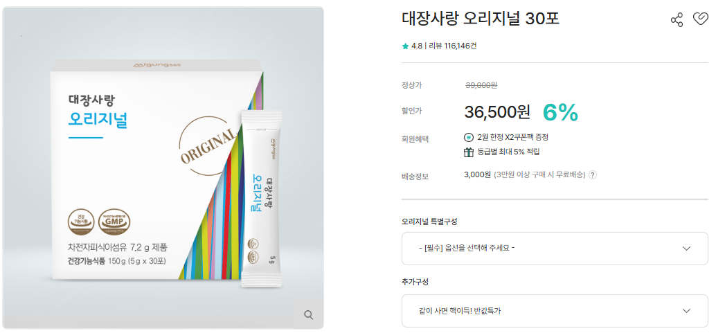 대장사랑 못지않은 효과가 나지만 가장 큰 장점은 가격!!